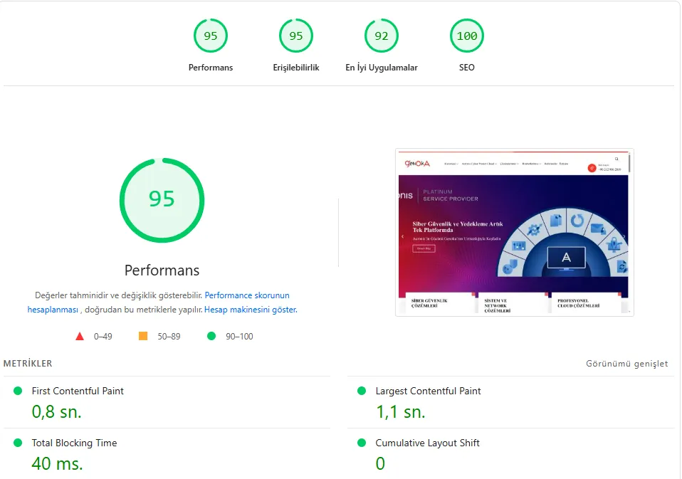 - Web sitesinin teknik SEO puanı yükseltildi ve site performansı iyileştirildi.